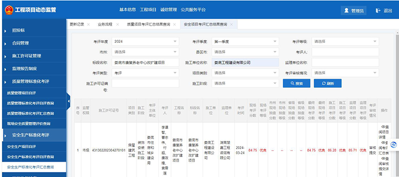 該項目在2023年度安全生產標準化季度考評和質量管理標準化季度考評中獲得了較好成績。質量管理標準化季度考評第二、三季度被評為優良;安全生產標準化季度考評第三、四季度被評為優良。