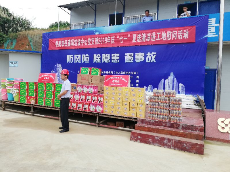 七月一日上午,市住建局(人防辦)黨委副書記李群歡書記率領市住建局培訓中心黨支部全體黨員,親臨我司施工現場,炎夏送清涼慰問一線的農民工,深深地感受黨恩和領導的關心。