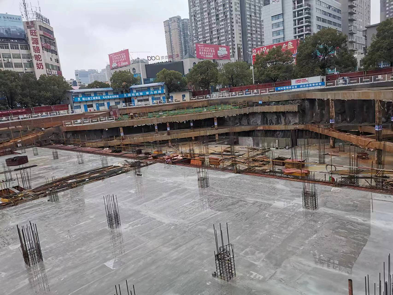市中心醫(yī)院項(xiàng)目基坑深15米,建筑地質(zhì)條件及周邊環(huán)境非常復(fù)雜,場地土均為深度8米以上的回填土,地下水豐富,場地北面距離4米是醫(yī)院原急診樓,急診樓是80年代初的混合結(jié)構(gòu)建筑,東面是老舊住宅小區(qū),這些建筑對地基沉降非常敏感,地下室施工技術(shù)要求非常高,項(xiàng)目經(jīng)理(兼臨時黨支部書記)組織項(xiàng)目部人員邀請湖南頂級專家團(tuán)隊無數(shù)次論證,優(yōu)化設(shè)計,編制專項(xiàng)施工方案并通過專家論證,嚴(yán)密組織,“黨員先鋒隊”承擔(dān)起24小時地質(zhì)條件變化監(jiān)控任務(wù),并建立預(yù)警機(jī)制。通過一年的艱苦努力,在確保周邊建筑物安全,保證醫(yī)院正常工作及小區(qū)居民正常生活前提下,地下室工程于2022年初順利完成并通過驗(yàn)收,同年9月17日該項(xiàng)目也如期“喜封金頂”,得到社會各界高度評價。